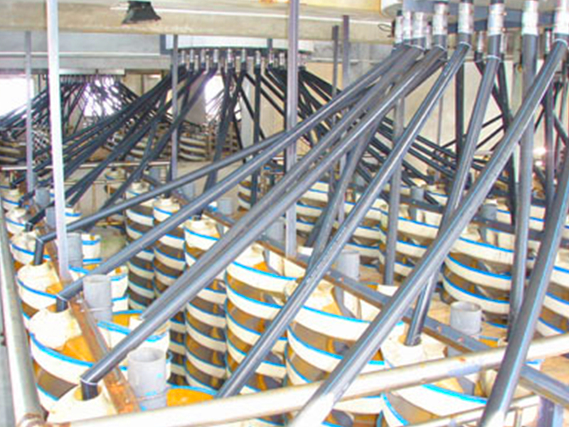 公司有玻璃鋼化工技術(shù)及制造工藝的優(yōu)勢,早在1988年就研制開發(fā)了國內(nèi)大直徑及新斷面特性的DL—2000型兩米直徑玻璃鋼螺旋溜槽。該設(shè)備一臺處理能力相當(dāng)于40臺搖床,選別指標(biāo)優(yōu)良。1989年通過部級技術(shù)鑒定并獲獎,填補(bǔ)國內(nèi)選礦設(shè)備一項空白。20多年來,公司先后開發(fā)了一系列玻璃鋼選礦新設(shè)備,使設(shè)備性能、結(jié)構(gòu)參數(shù)更臻完善。就玻璃鋼螺旋溜槽φ400—φ2000各類系列產(chǎn)品和各種床條結(jié)構(gòu)的玻璃鋼搖床而言,公司擁有國內(nèi)完備的直徑與型號系列;完善的結(jié)構(gòu)參數(shù);過硬的制作質(zhì)量;新穎的改進(jìn)型式;可靠的設(shè)備選型方法。